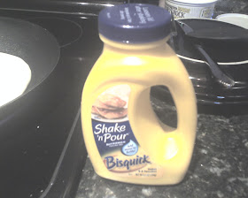 Regular reader Chris Norton sent in these photos which show us the new Bisquick pre-mixed and ready to pour pancake batter. The staff here was unaware of this new offering - but we have heard of an aerosol like whipped cream can of pancake batter.